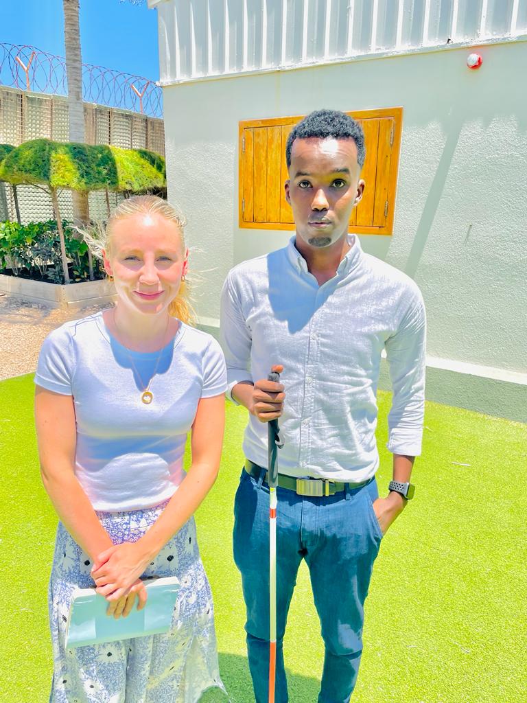 Abdirahman, a member of the Association of Visually Impaired Youth, attended a significant event at the British Embassy in Mogadishu.